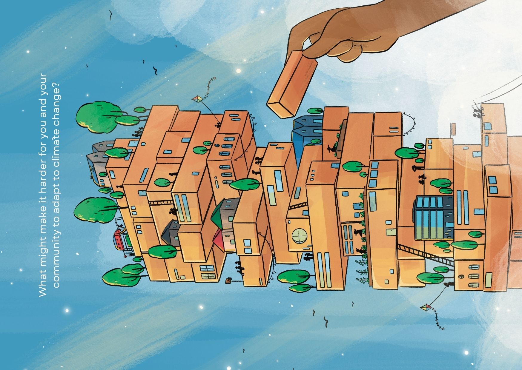 The postcards can be used by facilitators and community organisers to support group conversations. Each prompt helps uncover what matters most to people – their values, visions, needs and things they don’t want to carry forward. These conversations are critical for grounded, people-led climate adaptation.