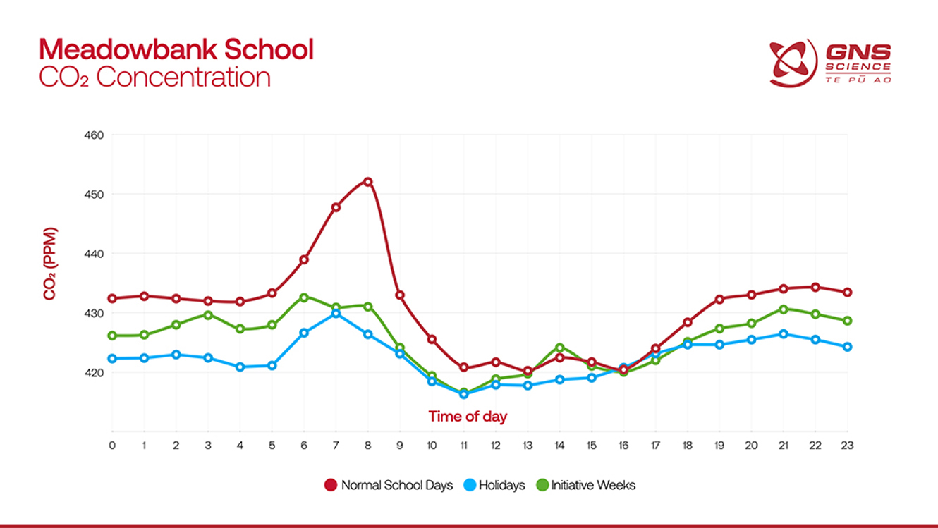 Over a six-week period, GNS Science carbon dioxide and carbon monoxide sensors were attached to a fence in the drop-off area. These tracked the concentration of these gases in the atmosphere and were able to detect clear peaks at the morning drop-off time. The sensor data supported the Enviro group’s observations that many students were being driven to school.