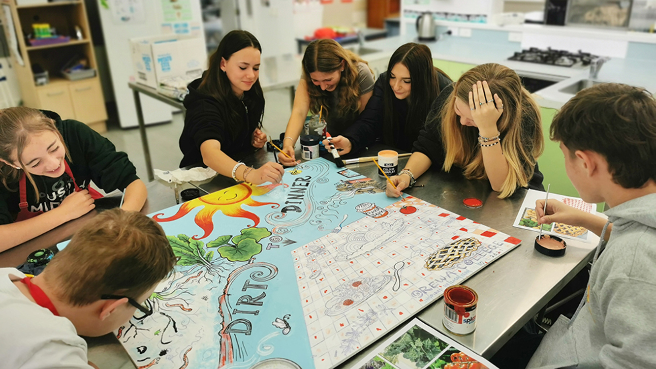 For Ōrewa College, the Mana Ora programme offered an opportunity to invest in infrastructure for onsite food production and curricular innovation. Year 9 Soft Technology teacher, Kate Newman, headed up the project, and has laid the foundations for a food tech and hospitality curriculum that engages students in the cycle of food production and builds their understanding of food waste and food miles.